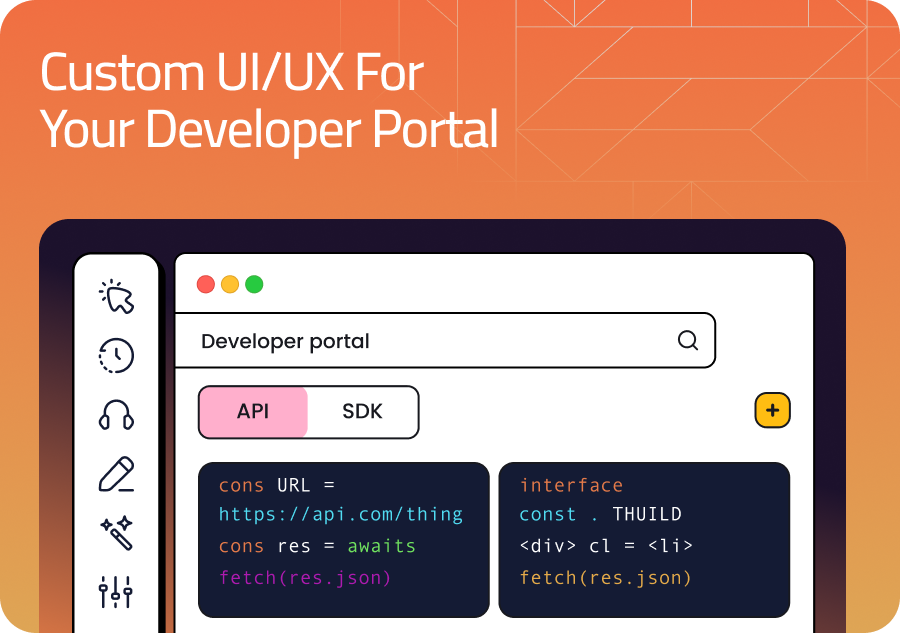 Enhance developer experience by building a custom portal that includes APIs, SDKs, and developer documentation—all with intuitive user experience, integrated testing, docs-as-code workflows, and centralized content management.
